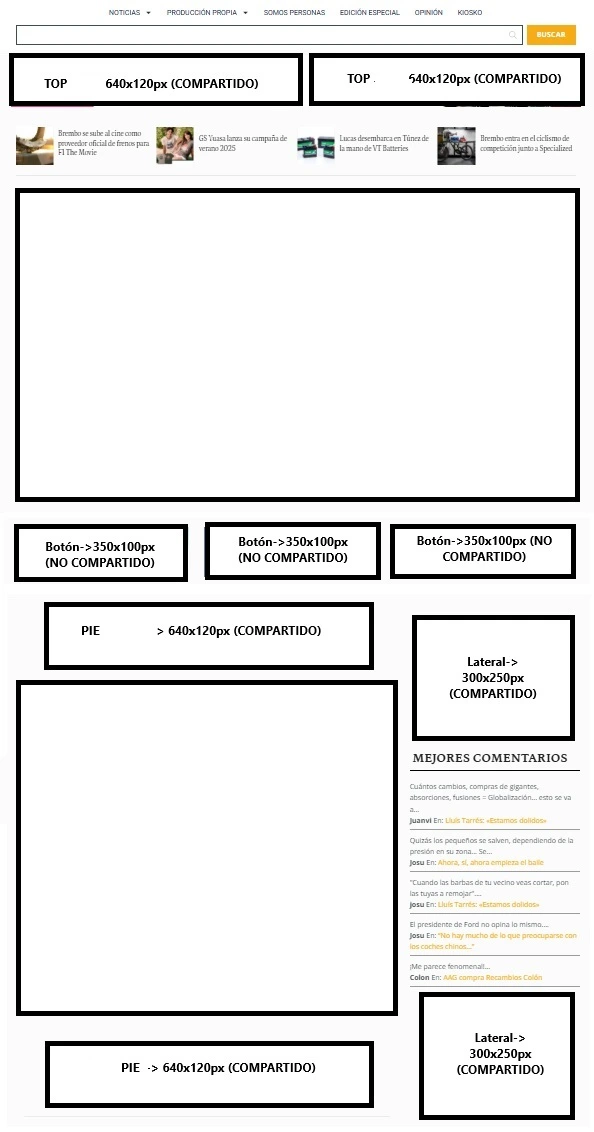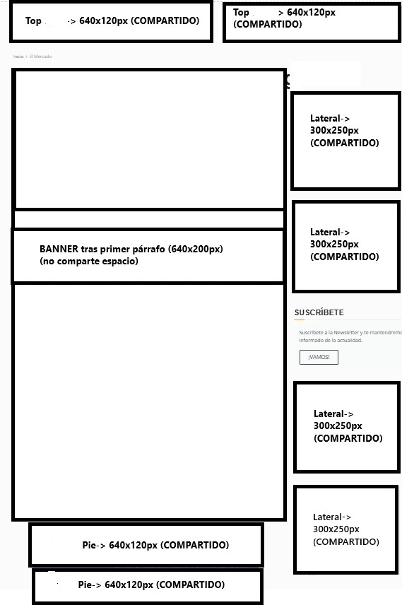 Las noticias patrocinadas, al igual que los banner, se contratan para un público concreto y por lo tanto se publicarán bajo una cabecera determinada, pudiendo contrarse packs de varias cabeceras.